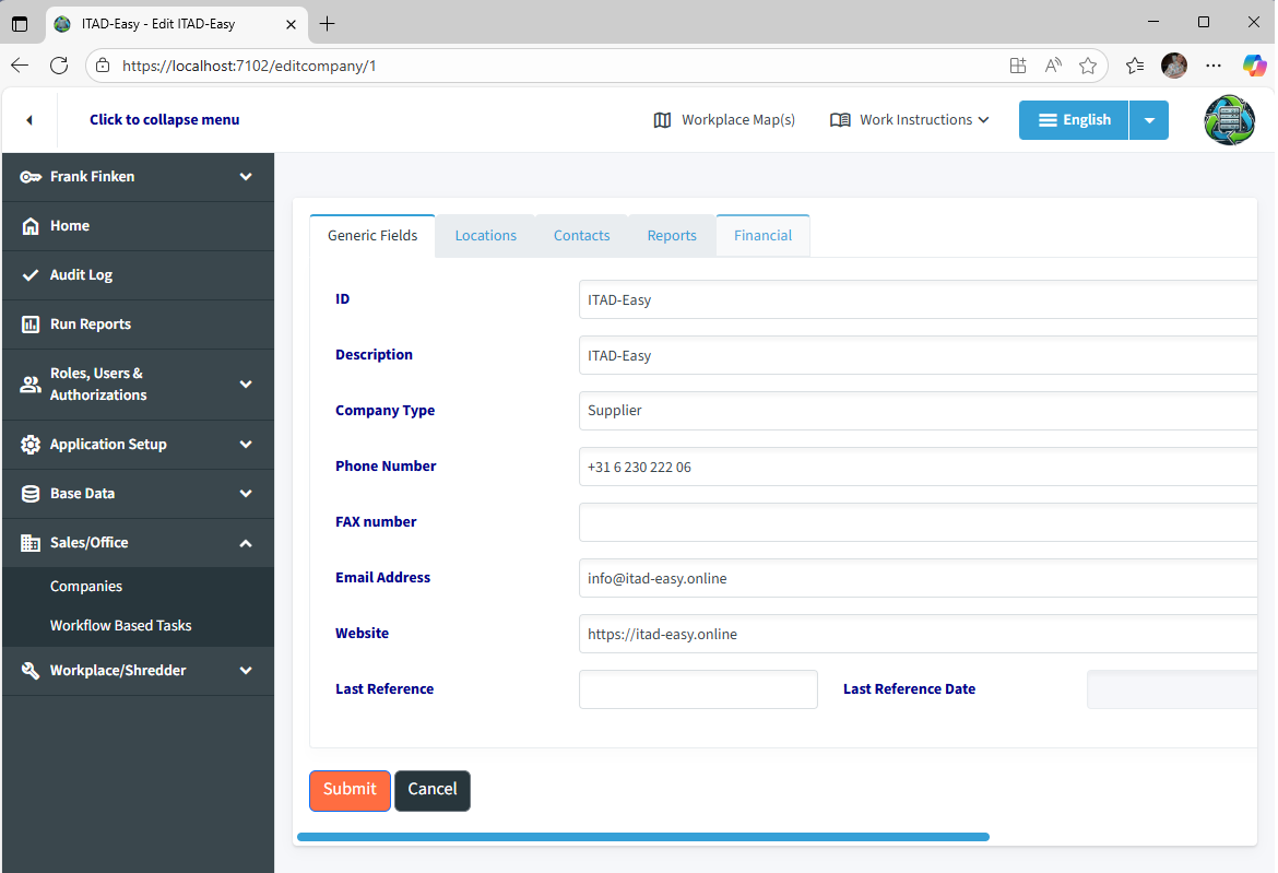 All texts in ITAD Easy are user definable. Out of the box ITAD-Easy supports English, Dutch, German, French, Russian and you can setup a "Other" language.